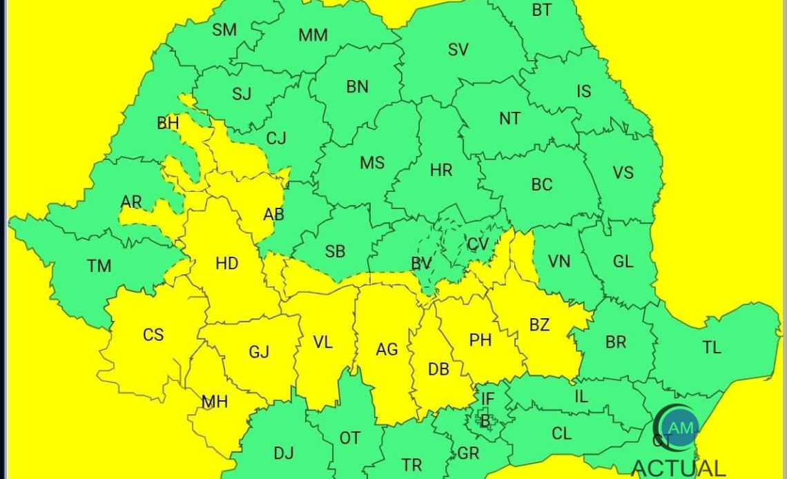 ANM a emis cod galben de vreme rea în intervalul 26 ianuarie, ora 08:00 – 27 ianuarie, ora 10:00.