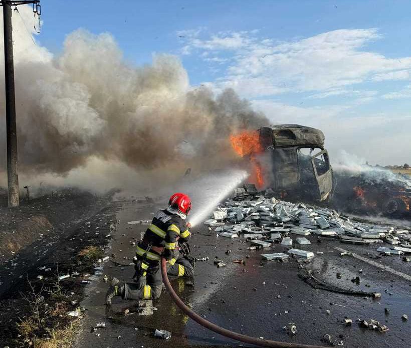 ”În 30 septembrie, ora 17.00, pe DN 56 A, la ieşire din localitatea Izimşa, s-a produs un accident rutier, în care sunt implicate două autotrenuri şi un autoturism. În urma evenimentului rutier a izbucnit un incendiu care s-a propagat la toate cele trei vehicule”, anunţă, marţi, IPJ Mehedinţă.
