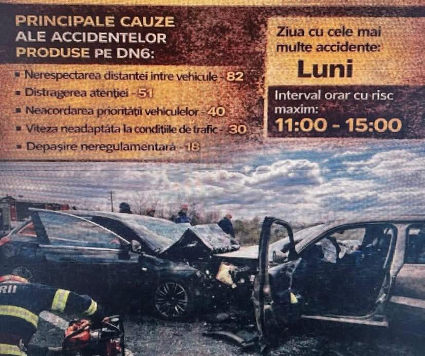 Astăzi, 6 aprilie, în intervalul 11.00-15.00, polițiștii rutieri din cadrul Inspectoratului de Poliție Județean Mehedinți desfășoară o acțiune preventivă pe DN 6, un sector de drum intens circulat, unde se înregistrează un risc crescut de evenimente rutiere, în special ca urmare a nerespectării regimului legal de viteză.